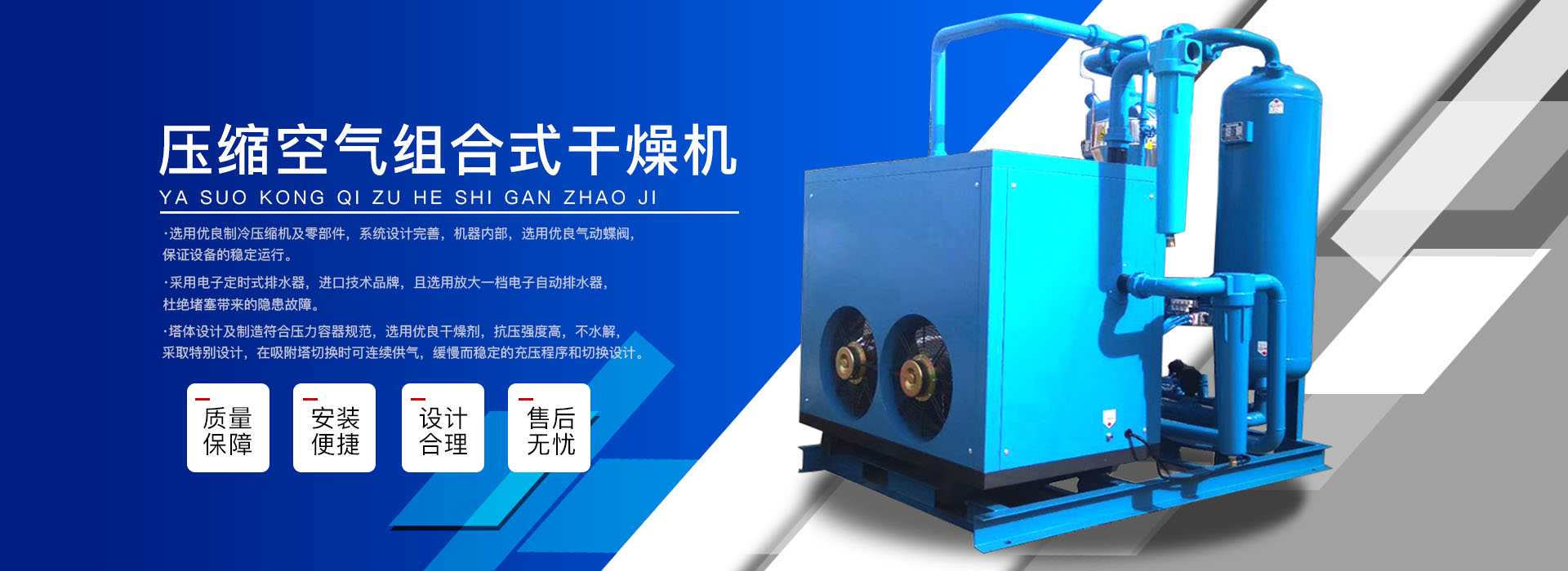 本公司系中國科學(xué)院、重鋼院、機(jī)電技術(shù)設(shè)計院、氣動技術(shù)研究所等相關(guān)專家合作的具有雄厚技術(shù)力量的高科技實體,是一個專業(yè)從事各種氣體干燥凈化及分離純化設(shè)備研究開發(fā)及推廣應(yīng)用的高科技公司。公司積多年對壓縮空氣凈化設(shè)備的生產(chǎn)技術(shù)和銷售經(jīng)驗,并在消化吸收國外先進(jìn)技術(shù)的基礎(chǔ)上,結(jié)合國內(nèi)實際工況特點(diǎn),研制出適合國內(nèi)外廣大用戶的“滬盛”牌HSD系列壓縮空氣冷凍式干燥機(jī)、吸附式干燥機(jī)、后部冷卻器、預(yù)冷機(jī)組、工業(yè)用冷水機(jī)組和HF系列壓縮空氣高效精密過濾器(國產(chǎn)濾殼,美國漢克森HANKISON濾芯)等13大系列計300多種規(guī)格產(chǎn)品。并且新研發(fā)出燥式干器, 廣泛應(yīng)用于電力、冶金、電子、機(jī)械、石油、化工、汽車制造、紡織、化纖、輕工、造紙、橡膠、儀表、食品、空氣、卷煙、生物、醫(yī)藥、日化等行業(yè),在國內(nèi)同行業(yè)中一直處于領(lǐng)先地位。
